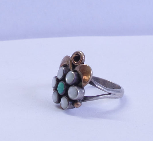 1 - Ring - stones garnet, tourmaline, and iolite Marked sterling